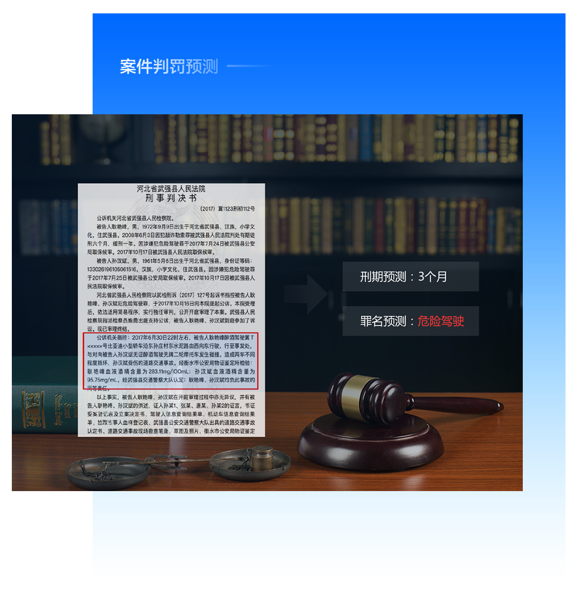 可快速给出新案件的罪名、刑期及适用法条的推荐等,显著提高法院等组织的办事效率,还能让公民根据案情快速分析可能面临的处罚,真正做到国家司法的公正性和高效能性